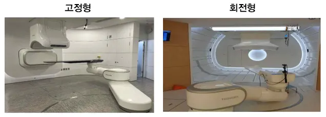 - 회전형 : 고정형에 비해 규모가 방대하고 360도 회전하며 어느 방향에서든 중입자를 조사하기 때문에 10도 단위로 세분화
